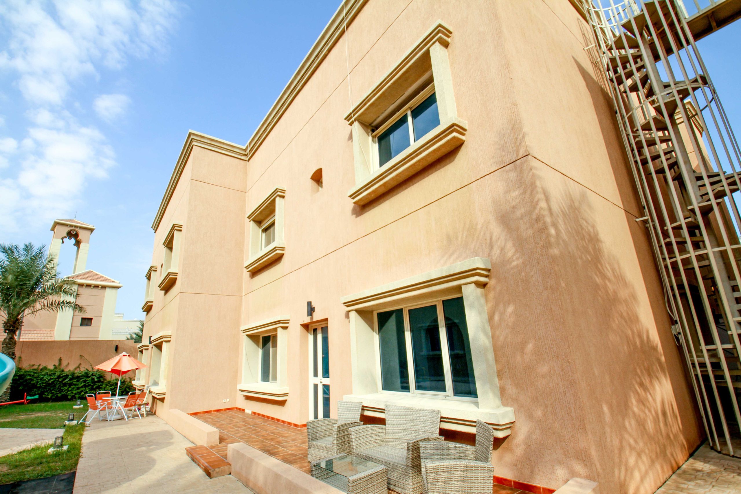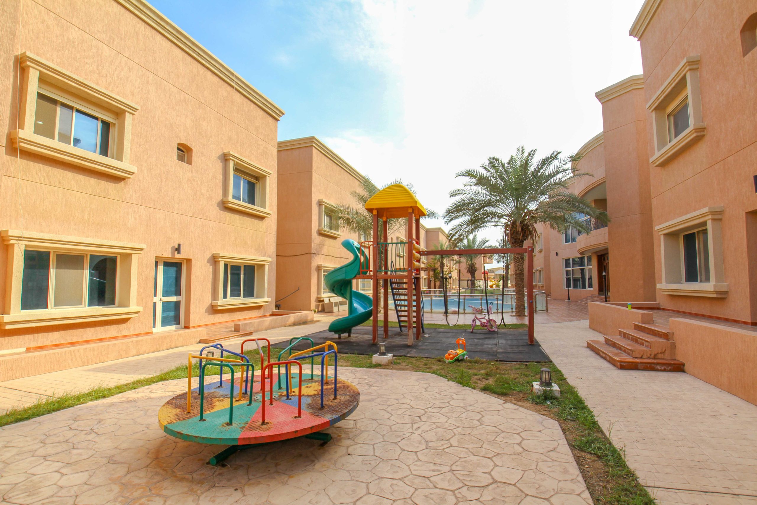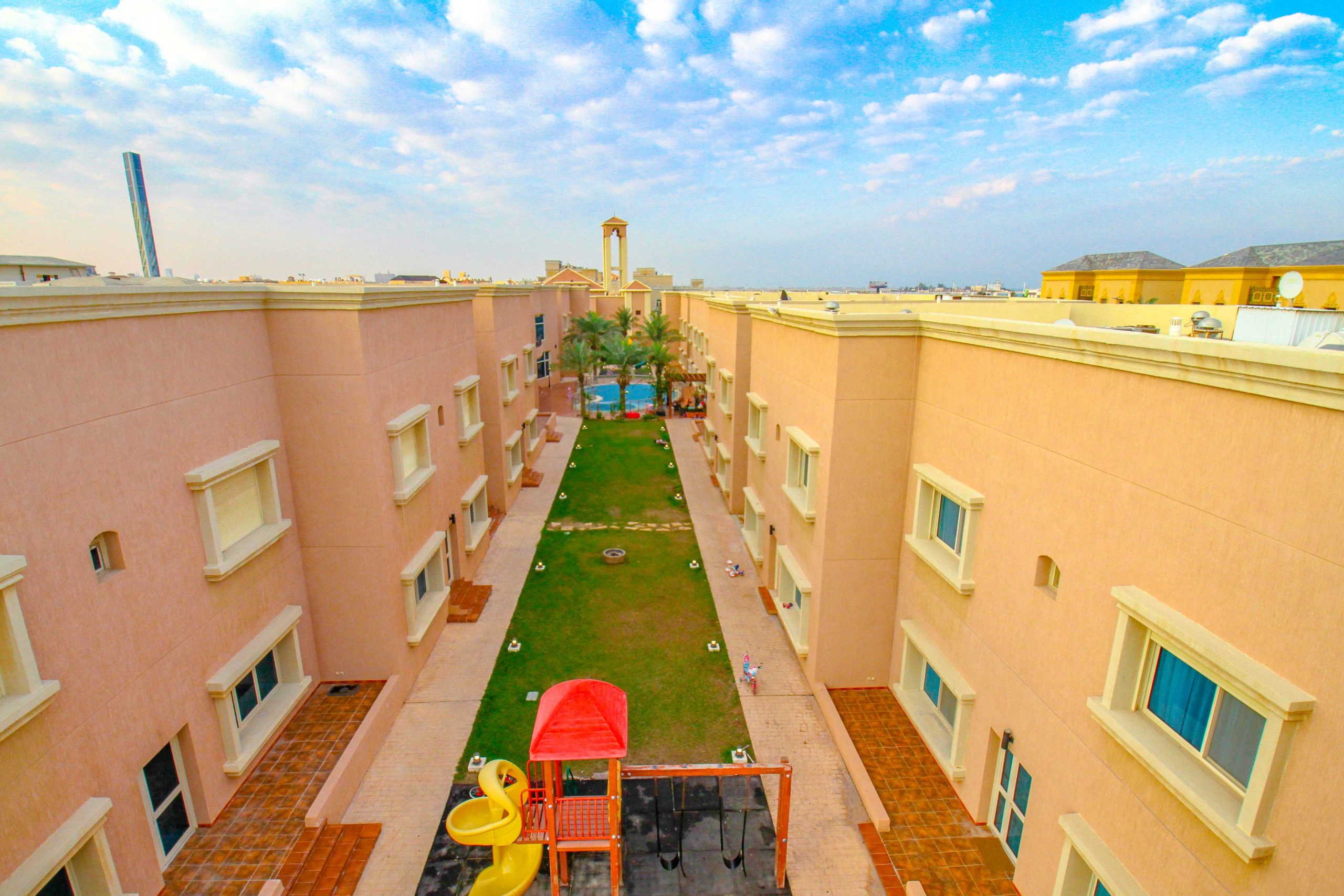 • مساحات خارجية منظمة توفر بيئة آمنة ومريحة للعائلات والأطفال.